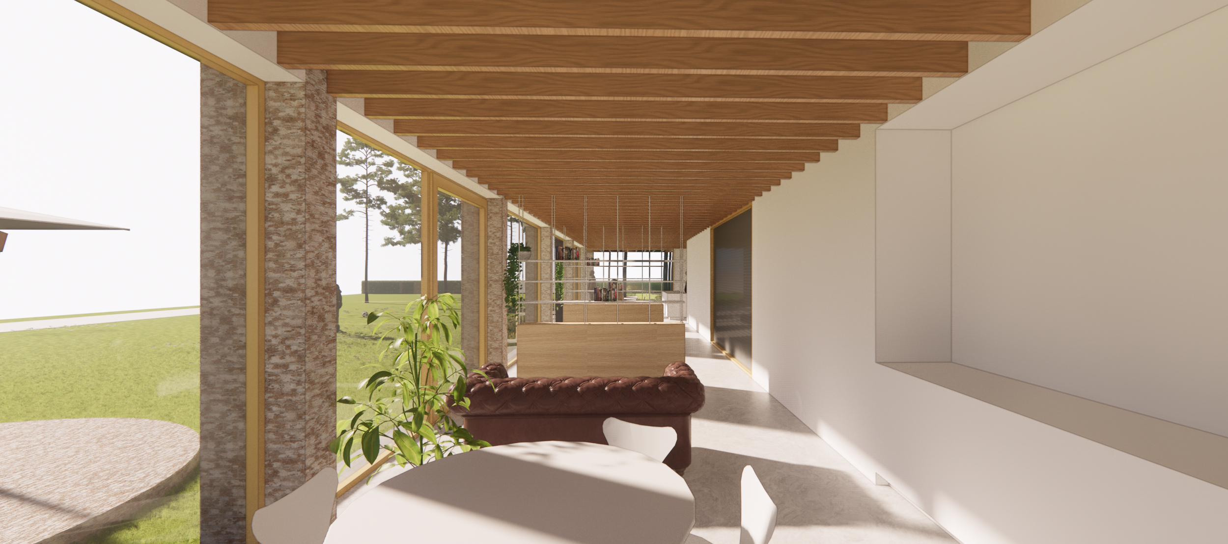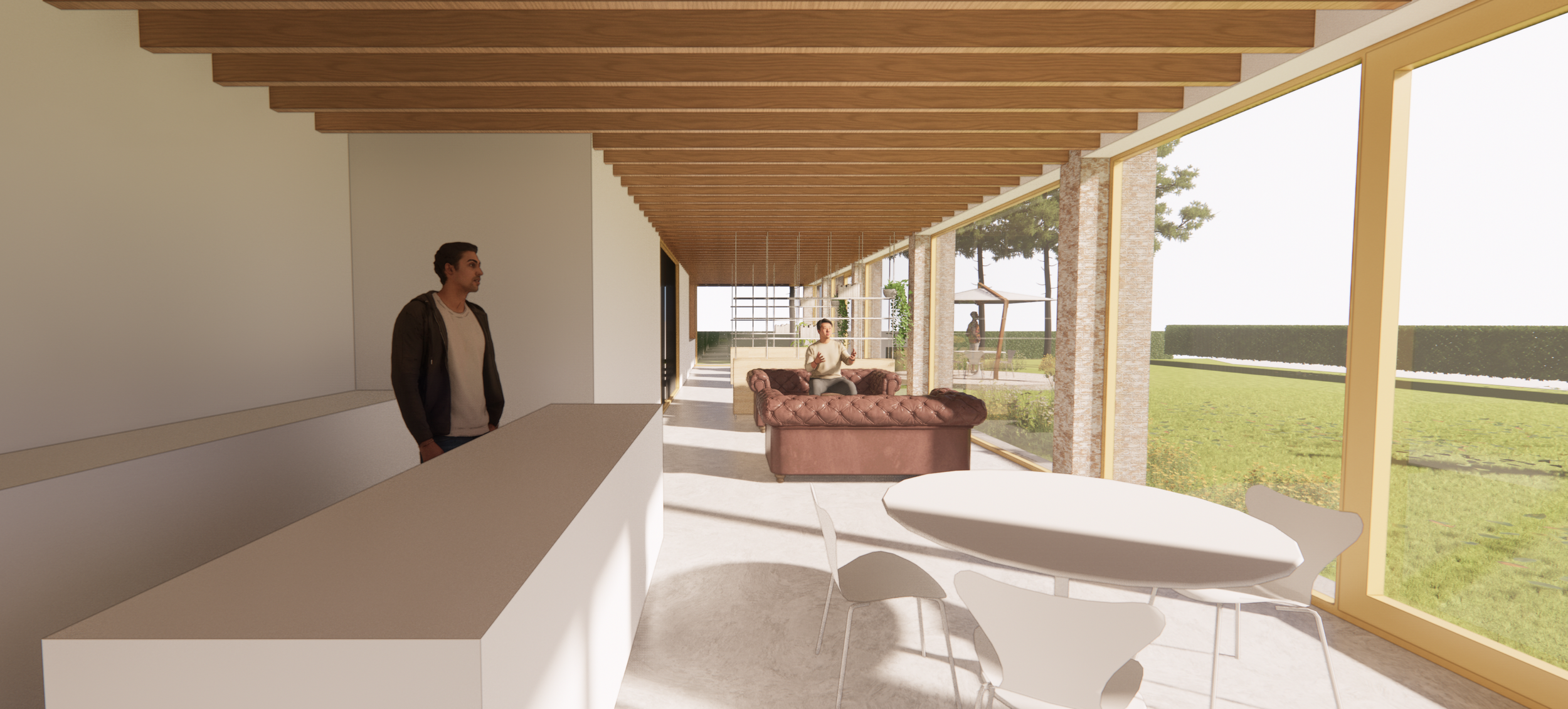 Te midden van het groen biedt deze vakantiewoning een alternatief voor het stedelijke ritme. Grote openingen en een compacte structuur versterken de beleving van licht, lucht en landschap.